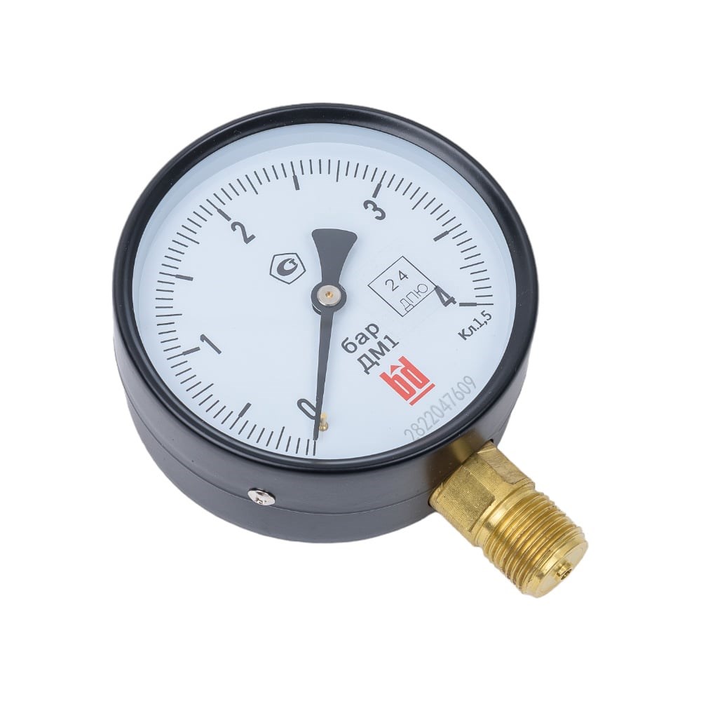 Манометр общетехнический с трубчатой пружиной, Тип ДМ (Модификация 1). Назначение: для измерения давления газообразных и жидких, не сильно вязких и не кристаллизирующихся сред, не агрессивных по отношению к медным сплавам (вода, пар, газ, масло, керосин, бензин, дизельное топливо и др).