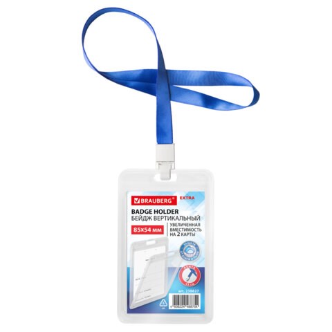 Бейдж вертикальный (85х54 мм) на 2 карты, с лентой 45 см, ЗАЩИТА ОТ ВЛАГИ И ПЫЛИ, BRAUBERG EXTRA, 238827