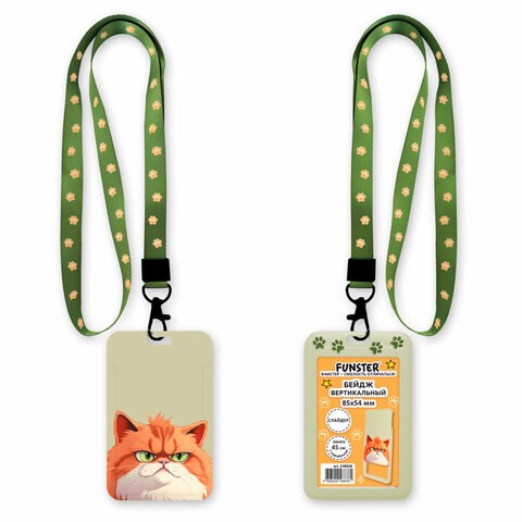 Бейдж вертикальный с 3D-печатью "Котик" (85х54 мм), лента 45 см, СЛАЙДЕР, FUNSTER (ФАНСТЕР), 238828