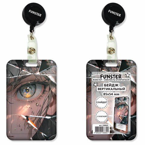 Бейдж вертикальный с 3D-печатью "Отражение" (85х54 мм), с рулеткой, СЛАЙДЕР, FUNSTER (ФАНСТЕР), 238841
