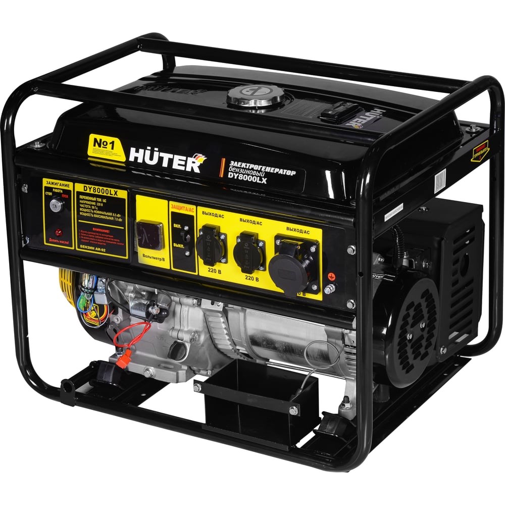 Компактный, надёжный и производительный для своего класса – так можно охарактеризовать портативный бензогенератор HUTER DY8000LX. Он оснащён 4-тактным одноцилиндровым бензиновым двигателем с воздушным охлаждением и электрической машиной – альтернатором, преобразующим механическую энергию в электричество. Модель относится к категории универсальных и может широко использоваться в качестве альтернативного источника переменного тока 220 В, 50Гц. Номинальная мощность агрегата – 6.5 кВт.Электрогенератор HUTER DY8000LX имеет надёжную защиту от перегрузок и коротких замыканий. В его конструкции также реализована система блокировки пуска при недостаточном уровне масла. Стартер генератора ручной и электрический от АКБ, что позволяет быстро «стартовать» в любых погодных условиях. Имеется вольтметр для контроля величины напряжения. Для удобства транспортировки агрегат может комплектоваться колёсами (в базовую комплектацию не входят). В целом эта модель зарекомендовала себя как устойчиво работающая, с вместительным бензобаком – 25 л и с экономичным расходом топлива.