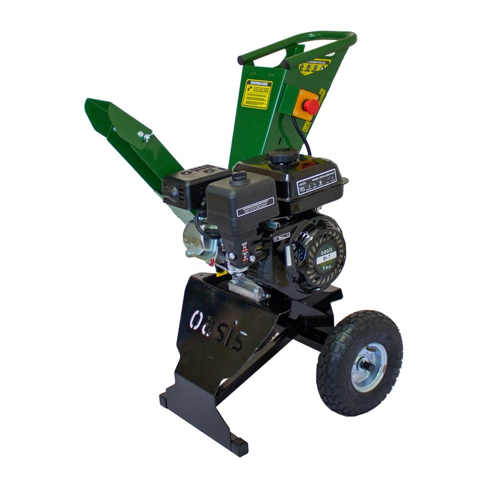 Садовый бензиновый измельчитель Oasis BI-7 помогает быстро утилизировать растительные материалы, ветки, сучья, стволы небольших деревьев путём их дробления для уменьшения объёма и удобства транспортировки. Применяются в приусадебных, дачных и садовых хозяйствах.Удобство использования.Измельчитель Oasis BI-7 обладает компактными размерами и пневматическими колёсами, что делает его удобным в хранении и транспортировке. Эргономичная ручка позволяет легко перемещать технику по участку, а увеличенная нижняя стойка придаёт дополнительную устойчивость. Желоб для приёма древесины располагается таким образом, что не нужно наклоняться и дополнительно утрамбовывать древесину. Прочные стальные ножи позволяют легко измельчать стволы и ветки древесины до 50 мм. Измельчённую древесину можно использовать в качестве мульчи, которая защищает землю от высыхания и, перегнивая, служит удобрением.Качество и долговечность.Благодаря качественным двусторонним стальным ножам и мощному двигателю измельчитель Oasis BI-7 прослужит дольше аналогов и станет превосходным помощником на долгие годы.