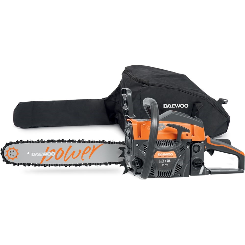 Бензиновая пила DAEWOO DACS4516 оснащена двухтактным двигателем 045 two stroke. Используется для распила деревьев, обрезания веток. Для доступа к воздушному фильтру не требуются дополнительные инструменты. Антивибрационная система способствует снижению нагрузки на кисти рук при длительном использовании. Инерционный тормоз цепи при необходимости остановит ее за несколько десятых секунды, специальный контактный защитный щиток срабатывает при непроизвольном касании рукой - все это обеспечивает защиту оператора. Модель поставляется в сумке, что решает вопрос хранения и транспортировки.