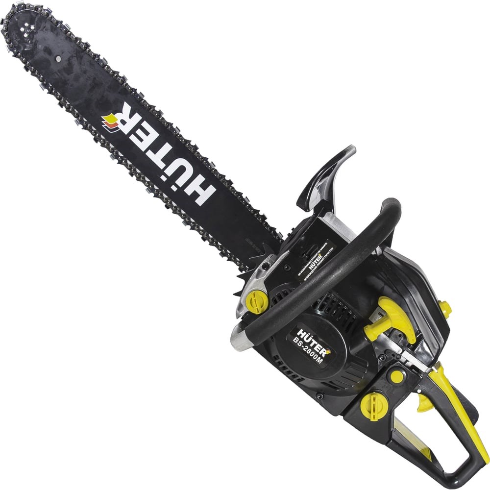 Бензопила Huter BS-2800M 70/6/19 - прочный и мощный агрегат, позволит справиться с задачами любого уровня сложности. Обладает долговечной конструкцией, отличной маневренностью. Резиновые амортизаторы, расположенные между рукоятками и картером пилы, снижают вредную вибрационную нагрузку при работе с бензопилой, делают работу комфортнее. Масляный бак размещается в передней части картера. Принудительная смазка цепи и шины применяется для снижения трения между ними, что увеличивает срок службы пильной гарнитуры. Легкий старт влияет на скорость запуска, особенно в зимний период. Он добавляет дополнительный крутящий момент при рывке. Безопасности в модели уделено много внимания. Блокировки курка газа предотвращает случайное нажатие. Функция механического инерционного тормоза цепи также важна: при резком отскоке пилы во время пиления (вверх и назад) рука упирается в ручку тормоза и отщелкивает ее, а тормозная лента затягивается и тормозит барабан сцепления, цепь при этом останавливается практически мгновенно. Защитный щиток в случае разрыва цепи или ее соскока с шины предотвращает травмирование.