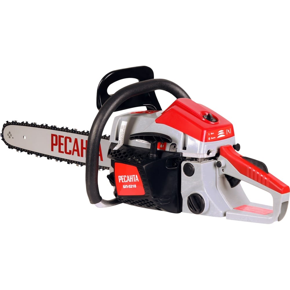 Бензопила Ресанта БП-5218 позволяет распиливать древесину вдоль и поперёк волокна, опиливать ветки деревьев, валить их и заготавливать дрова. Данная модель с бензиновым карбюраторным двигателем достаточно мощная, чтобы распиливать бревна разной толщины. Её компактная шина 450 мм делает цепную пилу идеальной для работы с ветками и брусом. Благодаря мощному 2-х тактному двигателю на 3.8 л.с. с воздушным охлаждением бензопила отлично справляется с большими объёмами работ на приусадебном участке или в лесном хозяйстве.Цепь состоит из 72 звеньев толщиной 1,5 мм с шагом 0,325". Пила оснащена улучшенным масляным насосом, благодаря которому цепь всегда хорошо смазана специальным маслом. Это не только улучшает эксплуатационные характеристики, но и увеличивает срок службы металлических деталей. Емкость бака для смазки цепи - 260 мл.Поршневая группа данной модели хромирована, что повышает её надёжность. Карбюратор отличается простотой настройки. Используется комбинированная система управления воздушной заслонкой. Она автоматически переводится в рабочее положение при нажатии курка газа.Система «легкий старт» упрощает запуск бензопилы. Ручной топливный насос позволяет закачивать топливо в карбюратор при холодном пуске.Ресанта БП-5218 оснащена тормозом цепи, который защищает оператора от отскока во время работы. Дополнительный комфорт обеспечивает продуманная система амортизации, состоящая из 3 демпфирующих втулок.