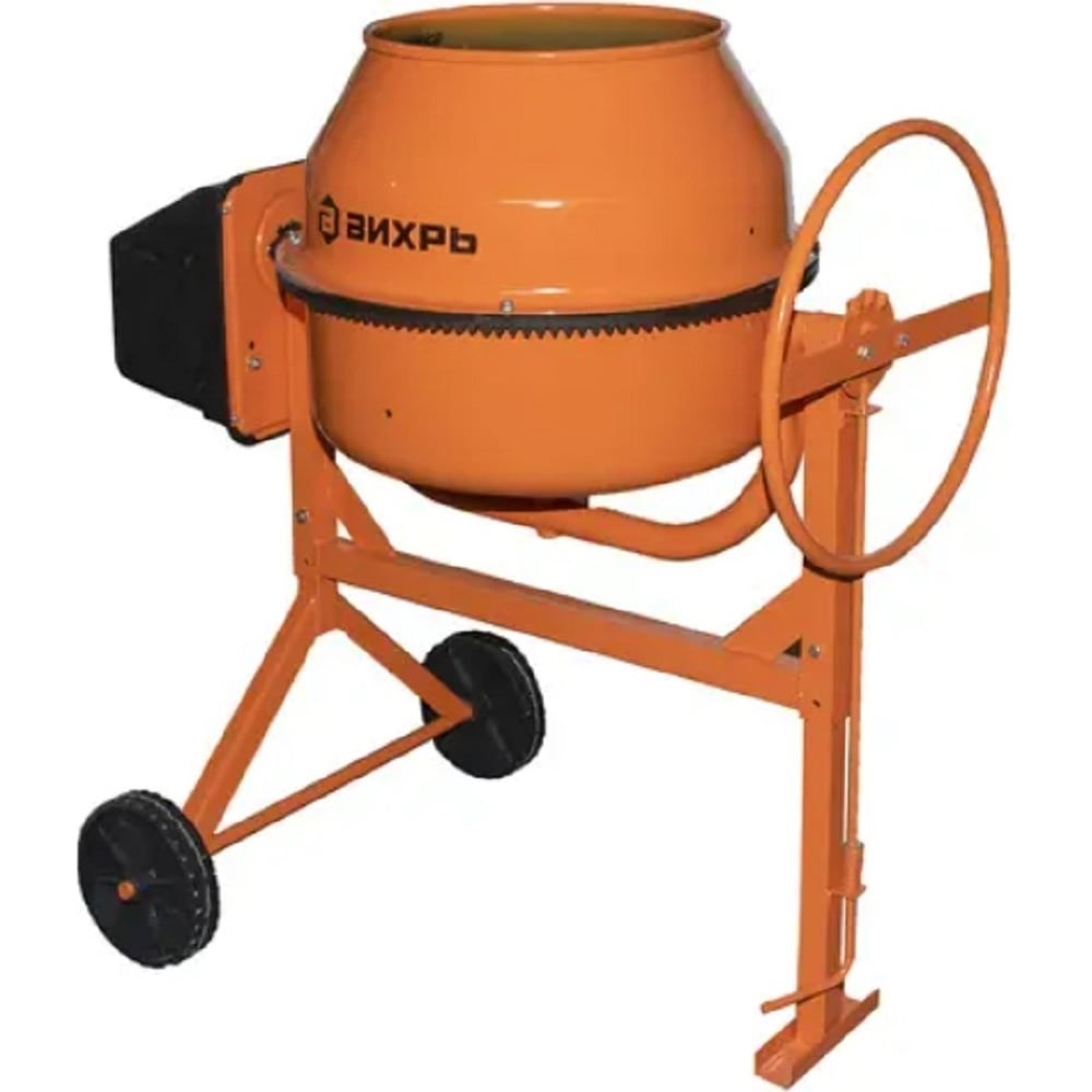 Электрическая бетономешалка Вихрь БМ-130П мощностью 550 Вт поможет быстро смешать сухие материалы, приготовить растворы для строительных, ремонтных и других целей.Приготовление бетонной смеси, известкового и других растворов происходит гравитационным способом, то есть посредством вращения барабана, в котором установлены неподвижные лопасти. Объем барабана 130л. Скорость вращения бака составляет 32 об./мин, это оптимальный параметр, позволяющий быстро приготовить качественный раствор, смесь. Бетономешалка имеет стандартную конструкцию, предусматривающую наличие металлической подставки с 1 опорой и 2 колесами, благодаря которым устройство весом 36 кг легче перемещать с места на место. Благодаря поворотному колесу, упрощается выгрузка готовой смеси и другие манипуляции с барабаном. Согласно требованиям СНИП, корпус выкрашен в яркий оранжевый цвет. Особенностью модели является венец из полиамида. По сроку службы прочный пластик не уступает чугунному аналогу, однако более доступен по цене. Электробетономешалка защищена от повторного включения в случае непреднамеренного отключения питания.Эффективная, надежная, удобная в эксплуатации, недорогая модель Вихрь БМ-130П пригодится при проведении ремонта, строительства, сельскохозяйственных и других работ.