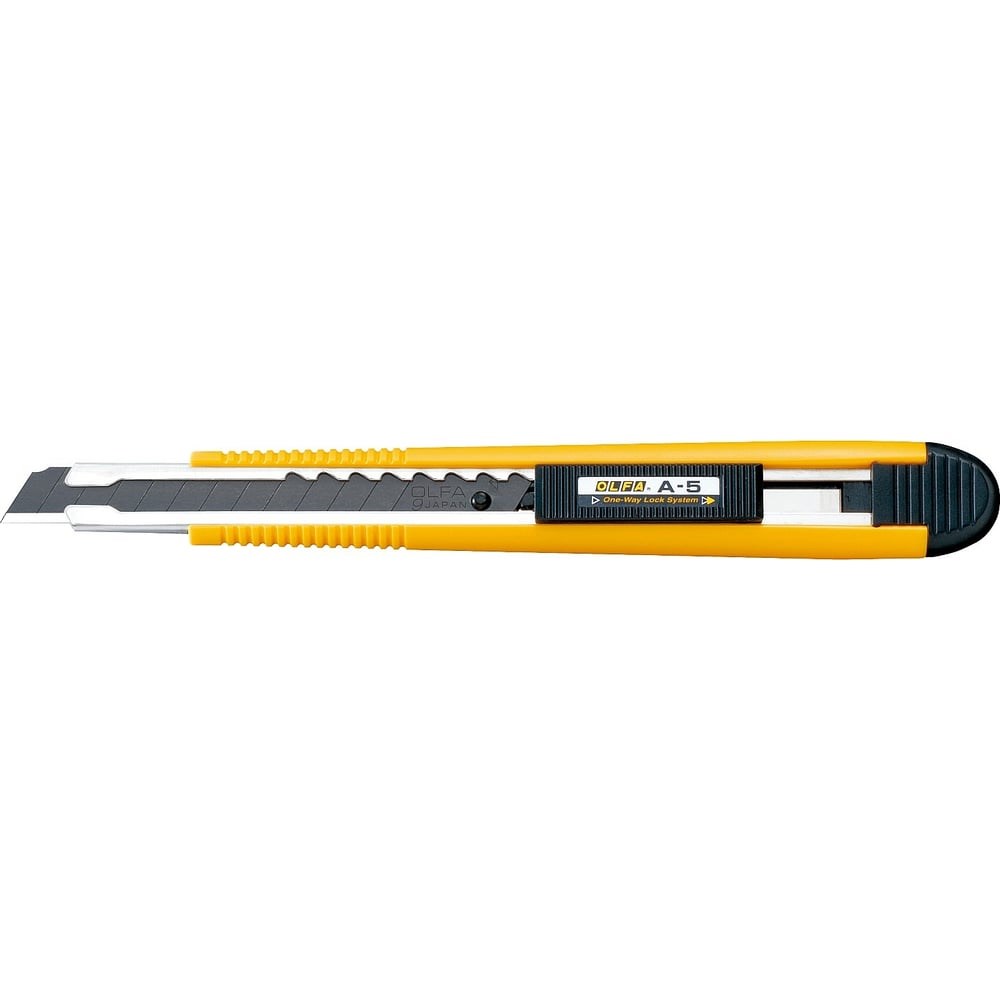 Благодаря односторонней системе запирания нож OLFA Autolock 9 мм OL-A-5 представляет собой усовершенствованную модель с автоблокировкой и сверхострым черным лезвием. Поставляется с черным лезвием шириной 9 мм, которое на 25% острее обычных лезвий OLFA. Состоит из тринадцати отламывающихся сегментов. Если нож затупился, просто отломите сегмент и продолжите работу.