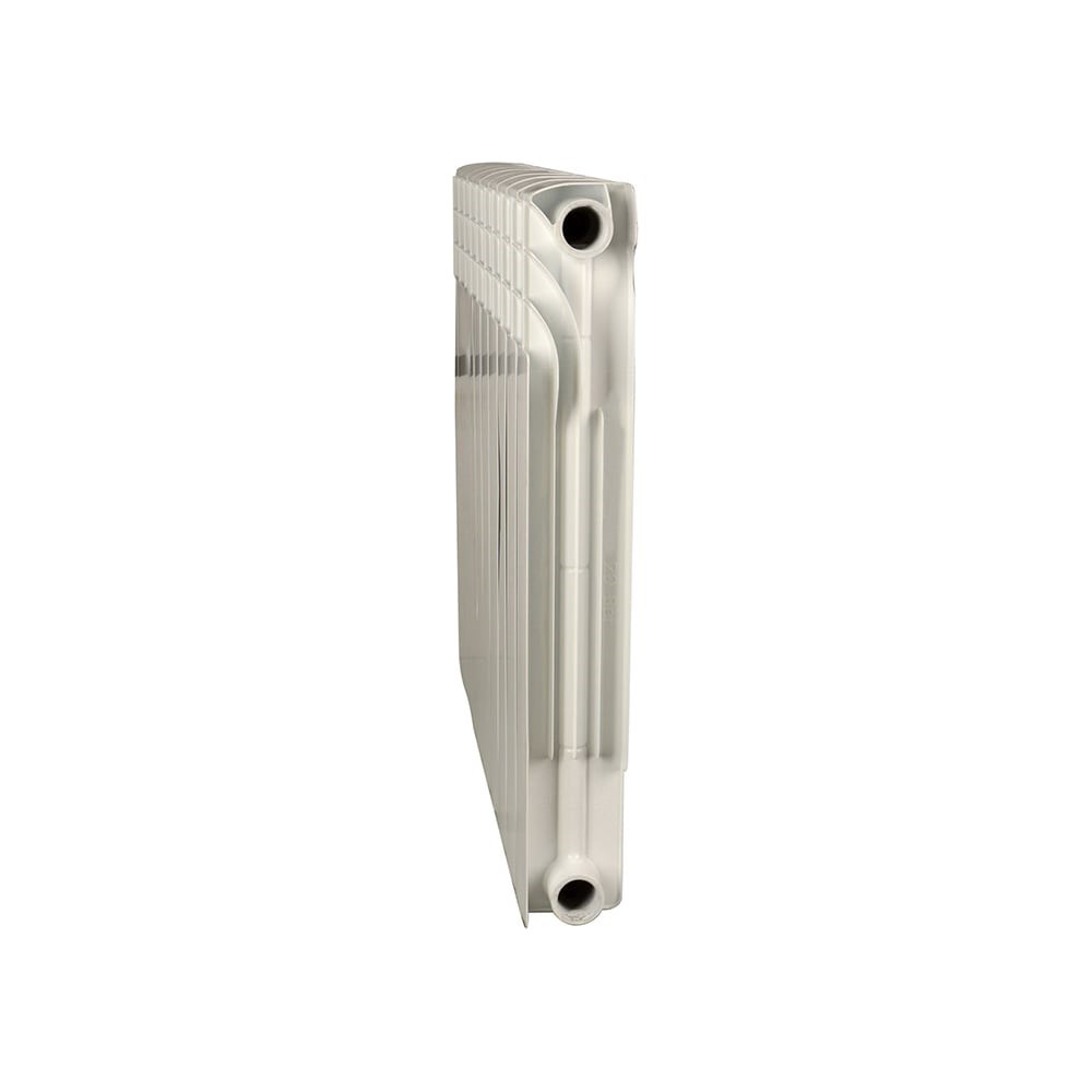 Радиатор Bimetta City состоящий из 10-и секций имеет теплоотдачу в 1430 Вт (при тепловом напоре 78°C), рабочее давление 20 бар, межосевое расстояние 500 мм, присоединительный размер 1" (один дюйм) и габаритные размеры 55777080 мм, вес 13,4 кг.Биметаллический радиатор применяется для водяного отопления жилых и общественных помещений. Батареи используются в автономных и центральных системах отопления однотрубного или двухтрубного типов. Биметаллический радиатор Bimetta City представляет собой стальной сердечник круглого сечения, который запаян в оболочку из высокопрочного алюминиевого сплава - такая конструкция позволяет придать батарее отопления современный привлекательный внешний вид и повысить ее эсплуатационные свойства по сравнению с полностью алюминиевым радиатором. Стальная основа радиатора позволяет использовать в качестве теплоносителя воду и незамерзающие жидкости с pH показателем от 6,5 до 9,5. Максимальная температура теплоносителя должна быть не больше 110°C.