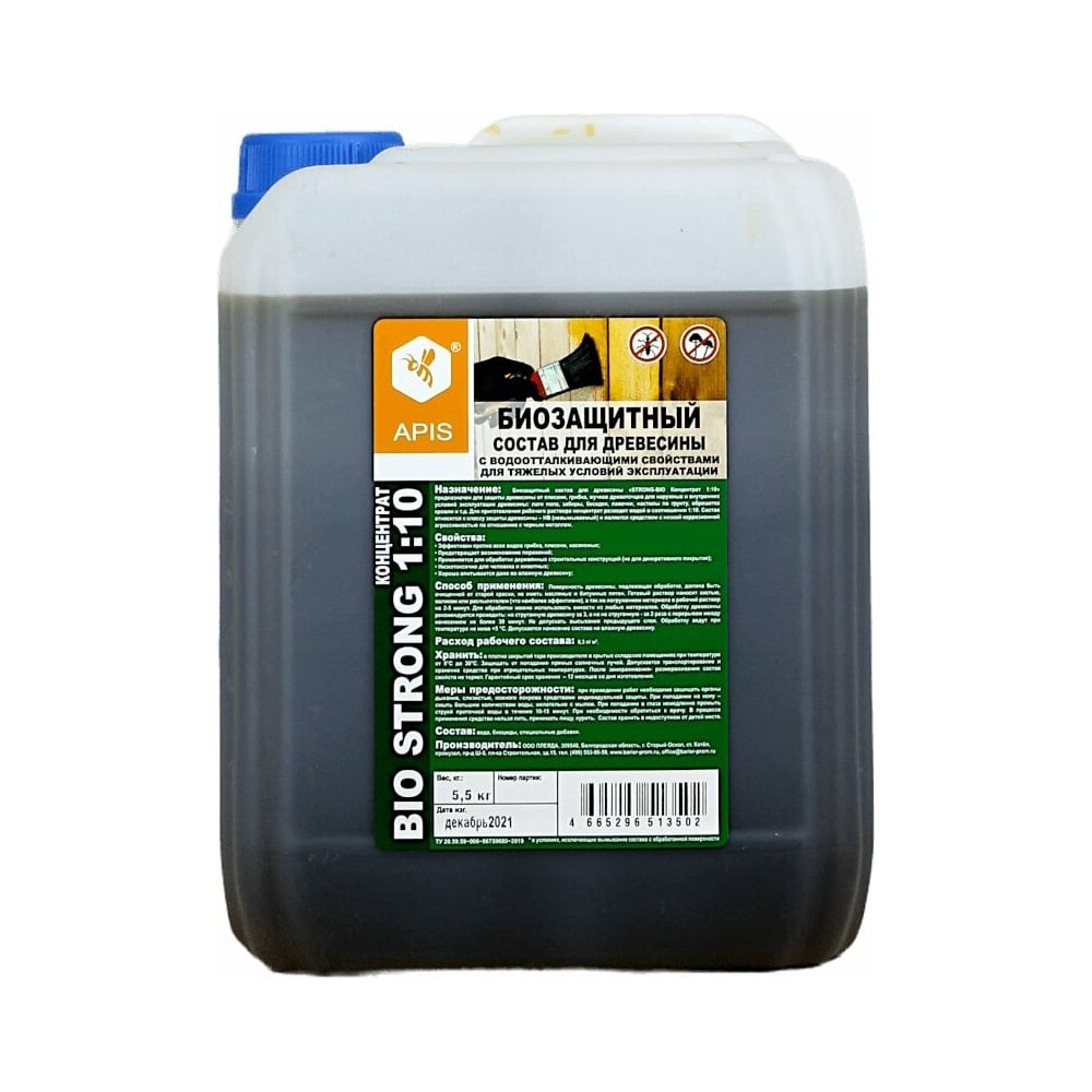 Биозащитный состав для древесины APIS Strong-bio (концентрат 1:10; канистра; 5.5 кг) 4665296512277 обеспечивает эффективную защиту от биопоражения: плесневых, окрашивающих и дереворазрушающих грибов, водорослей и насекомых-древоточцев. Состав обладает глубокой проникающей способностью и не вымывается водой. Продукт подходит для обработки поверхностей внутри помещений с высоким уровнем влажности.