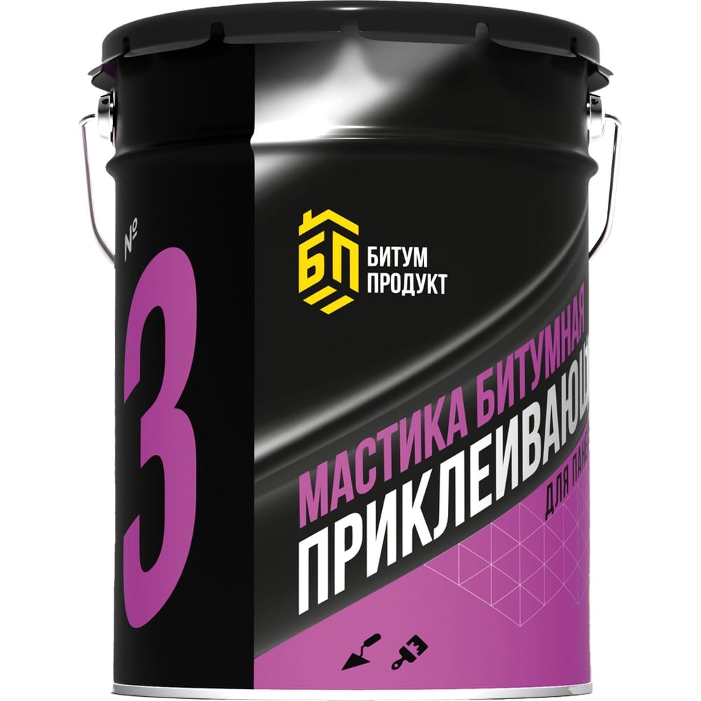 Битумная мастика для приклеивания БИТУМ ПРОДУКТ XPS 20 кг ВР-30 Битумная приклеивающая (плитная) мастика — это готовый к применению материал пастообразной консистенции на основе окисленного нефтяного битума. Мастика для устройства систем изоляции с применение XPS плит. Специально разработанный состав мастики подходит для нанесения на экструзионный пенополистирол (XPS) и пенопласт. Мастика полностью готова к нанесению и включает в себя все необходимые технологические добавки, наполнители и «щадящие» органические растворители, помогающие бережно фиксировать теплоизоляционные плиты из экструдированного пенополистирола, не разъедая их внутреннюю структуру. Расход мастики на один слой не более 1 кг/м2. Применяется по сухой, очищенной от грязи поверхности. Тщательно перемешать до начала проведения работ. Наносить мастику следует пятнами по 10-15 см, не менее 7 шт на 1 кв/м. Диапазон температур применения от -20°С до +40°С. При температуре ниже +5°С выдерживать в теплом помещении не менее 24 часов. Время высыхания мастики при стандартных условиях не более 24 ч. Перед применением рекомендуется обработать поверхность праймером. Не применять вблизи источников открытого огня. Работы проводить в хорошо проветриваемых помещениях. Избегать попадания на кожу и в глаза. ГОСТ 30693-2000 Высокая адгезия Готового применения Щадящие растворители Приклеивание на вертикальных поверхностях