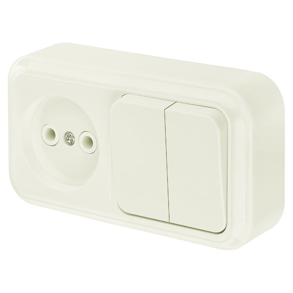 Блок Bylectrica, 2 выключателя + розетка ОУ, серия ПРАЛЕСКА, бежевый 2В-РЦ-523