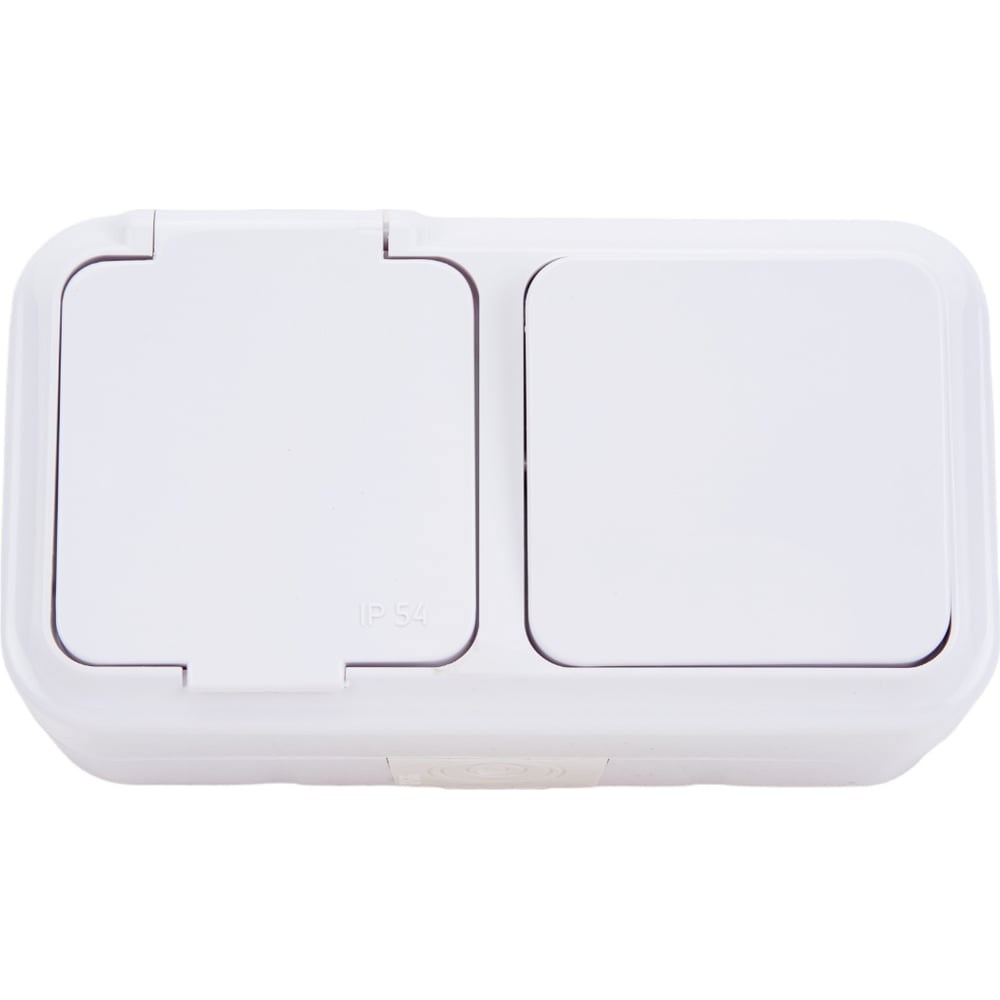 Блок Bylectrica 1 выключатель + розетка с заземляющим контактом ОУ IP54, серия ПРАЛЕСКА АКВА, белый, В-РЦ-657