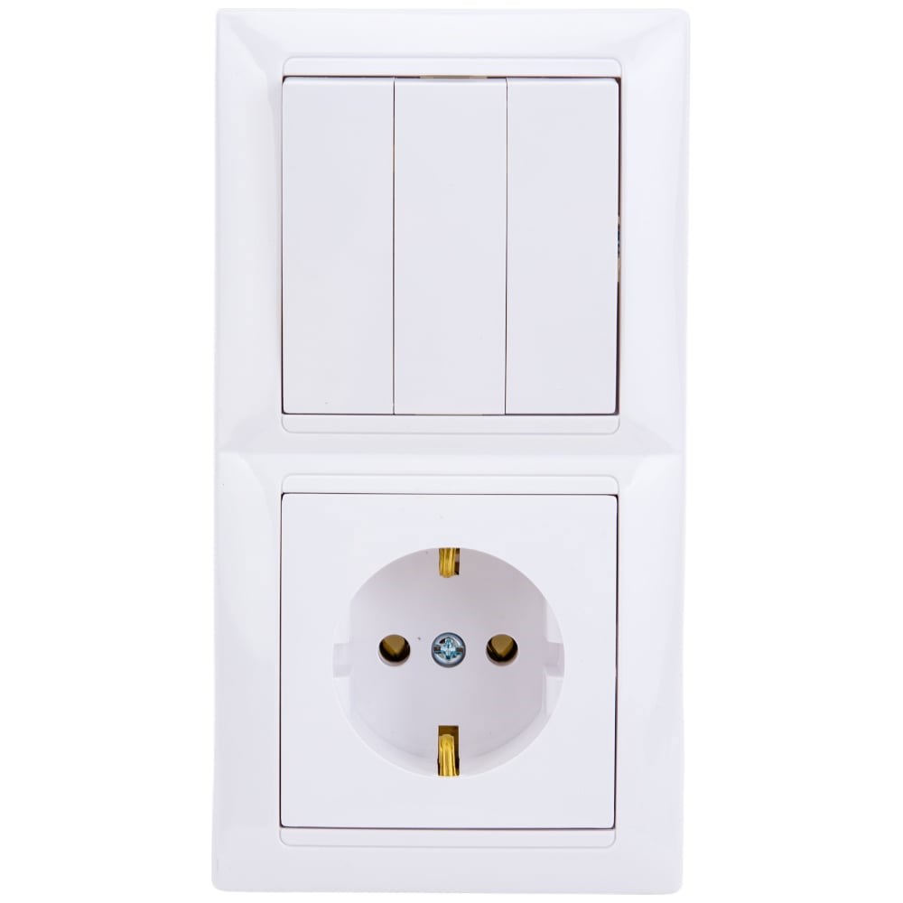 Блок Bylectrica 3 выключателя + розетка с заземляющим контактом СУ, серия СТИЛЬ, белый, 3В-РЦ-695