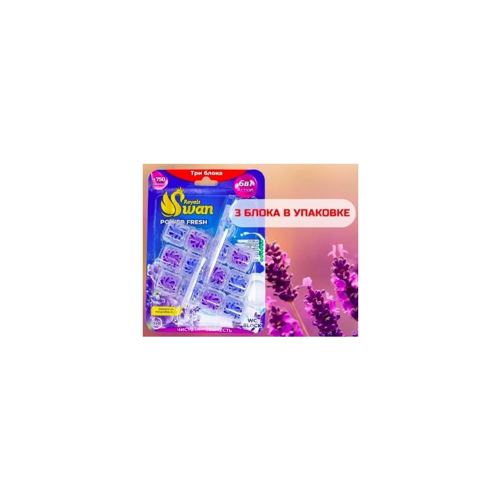 Блок для унитаза Royals Swan 3x40 гр, Лаванда RSWBD13 помогает обеспечить блокировку неприятных запахов 24/7, защиту от загрязнений и микробов и сохранить чистоту и блеск. При каждом смывании появляется изысканный аромат цветочного сада на срок 24 часа и обильная пена, которая борется с налетом, поддерживая гигиену и блеск поверхности унитаза. Блок Royals Swan для унитаза содержит активное вещество, которое под действием напора воды ополаскивает всю поверхность унитаза, защищая от бактерий и помогая предотвращать известковый налет. Как установить туалетный блок? Вскройте пластиковую упаковку, достаньте блок и поместите под ободок унитаза в место наиболее сильного потока воды при смыве с помощью держателя. По окончании использования ароматического блока выбросите его в мусорное ведро. Состав: <30% анионных пав, солей неорганических, 5-15% неионогенных ПАВ, <5% цитрата натрия, растворителя отдушки (эссенция).