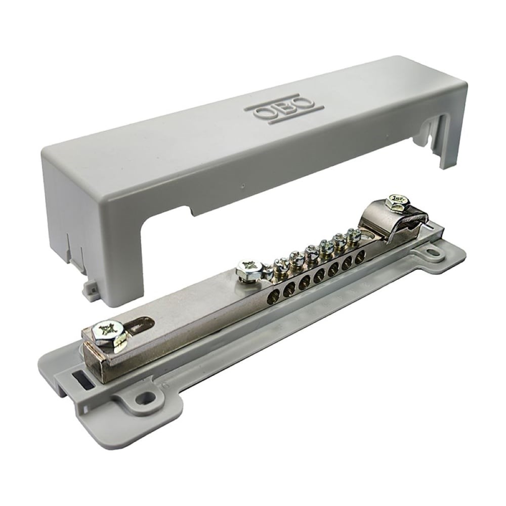 Шина для уравнивания потенциалов согласно стандарту ГОСТ 50571.3-2009/ ГОСТ Р 50571.5.54-2013, а также для молниезащитного уравнивания потенциалов согласно стандарту DIN VDE 0185-305: опора и крышка из полистирола, серого цвета; крышка с возможностью пломбировки; с контактной пластиной из никелированной латуни; болты и перемычки из гальванически оцинкованной стали; способность проводить ток молнии 100 кА (10/350). Возможности подключения: 7 одножильных или многожильных проводов до 25 мм? или тонкожильных проводов до 16 мм?; 1 круглый проводник Rd 8-10; 1 плоский проводник до FL 30 или круглый проводник Rd 8-10