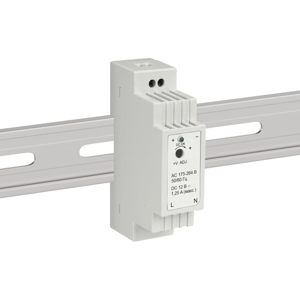 Блок питания на DIN-рейку предназначен для установки в электрический щит и подключения светодиодных лент, ламп, линеек и модулей с рабочим напряжением 12 В. Компактный корпус с размерами 25х93х56 мм выполнен из прочного ABS-пластика. Полая конструкция имеет отличные характеристики рассеивания тепла. Блок питания устанавливается в распределительный щит, обеспечивает быстрый и удобный доступ для обслуживания, позволяет спроектировать разные зоны подсветки по отдельности и с разной мощностью. Благодаря входному фильтру блок питания на DIN-рейку будет работать при скачках напряжения в диапазоне 175-265В, в то время как выходной фильтр сгладит пульсацию и защитит ваши глаза. Данный блок питания имеет степень защиты от пыли и влаги IP20, а это значит, что его рекомендуется устанавливать в сухих и проветриваемых помещениях.