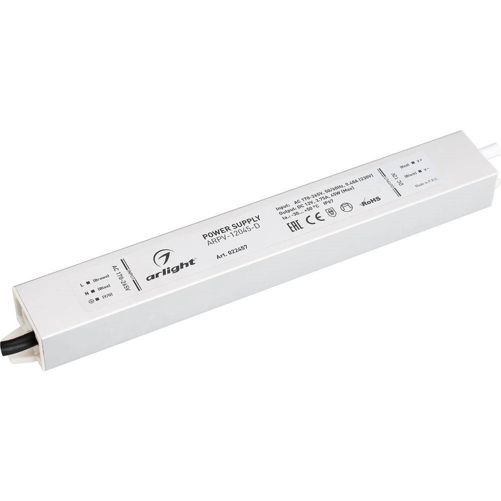 Блок питания Arlight ARPV-12045-D 022457 предназначен для преобразования переменного напряжения электрической сети в постоянное стабилизированное напряжение. Высокая степень защиты от пыли и влаги (IP67) позволяет использовать источник на открытом воздухе под навесом или в помещении. Герметичный алюминиевый узкий корпус обеспечивает эффективное естественное охлаждение. Имеет защиту от короткого замыкания, перегрузки и перегрева. Подходит для тихих мест. Тип подключения - провода. Коэффициент мощности (PF) - 0.5. Пусковой ток - 50 А. Класс электробезопасности - I. Потребляемый ток от сети AC 230 В - max: 0.48 A. КПД 82%. Выходной ток - 2001-5200 мА.
