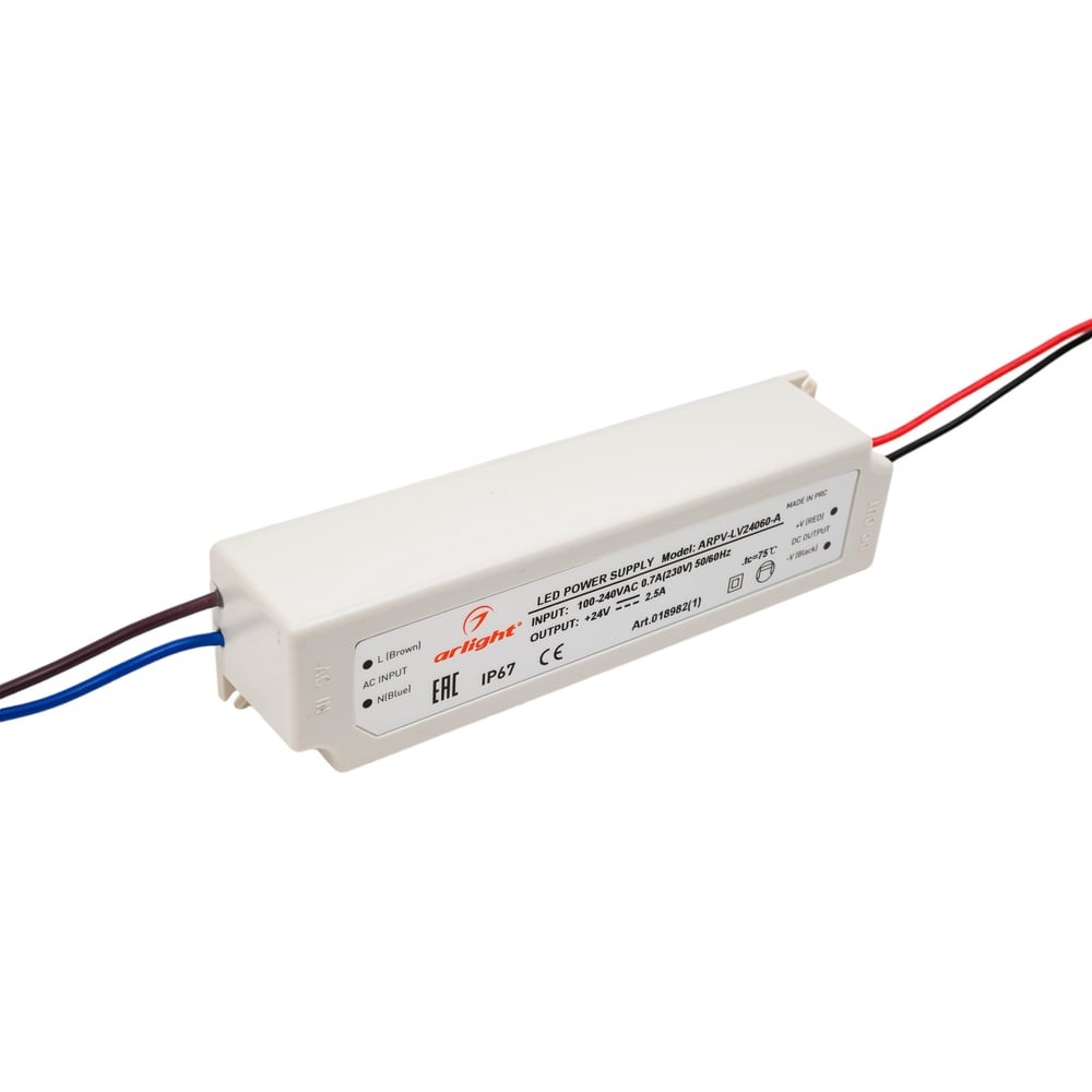 Дополнительные характеристики Блока питания Arlight ARPV-LV24060-A 0189821: Потребляемый ток от сети AC230В - max: 0.6 A Коэффициент мощности (PF) - 0.5 Пусковой ток - 60 A Длительность пускового тока - 1000 мкс Тип подключения - Провода Исполнение корпуса - Узкий длинный Материал корпуса - Пластик Класс электробезопасности - II