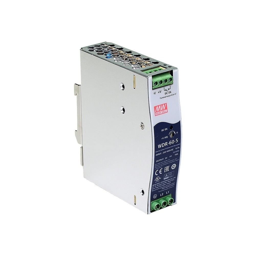 Серия WDR-60 представляет собой источник питания мощностью 60 Вт для DIN-рейки.Может принимать сверхширокий диапазон входного напряжения 180–550 В переменного тока для однофазной или двухфазной системы, простота установки на DIN-рейку, узкая ширина (32 мм) в тонком корпусеШирокий диапазон рабочих температур, высокое напряжение изоляции 4,7 кВ переменного тока, работа на высоте 2000 м, регулируемое выходное напряжение (макс. +20%), высокая эффективность, низкий уровень пульсаций и шума, полная защита.WDR-60 соответствует стандарту BS EN/EN-61000-6-2 относительно устойчивости к промышленной среде.ОсобенностиСверхширокий вход 180–550 В переменного тока для 1-фазного или 2-фазного режима.Ширина 32 ммВысокая изоляция ввода/вывода переменного тока 4,7 кВ (усиленная изоляция)Защита: короткое замыкание/перегрузка/перенапряжение/перегревОхлаждение свободной конвекцией воздухаСверхширокий диапазон рабочих температур -30–+85°C (снижение номинальных характеристик > +60°C)Контакт реле DC OKРегулируемое выходное напряжение постоянного тока (+20%)ПрименениеПодходит для промышленной автоматизации, наблюдения, телекоммуникаций, например:Система промышленного контроляОборудование для производства полупроводниковАвтоматизация производстваЭлектромеханический аппарат