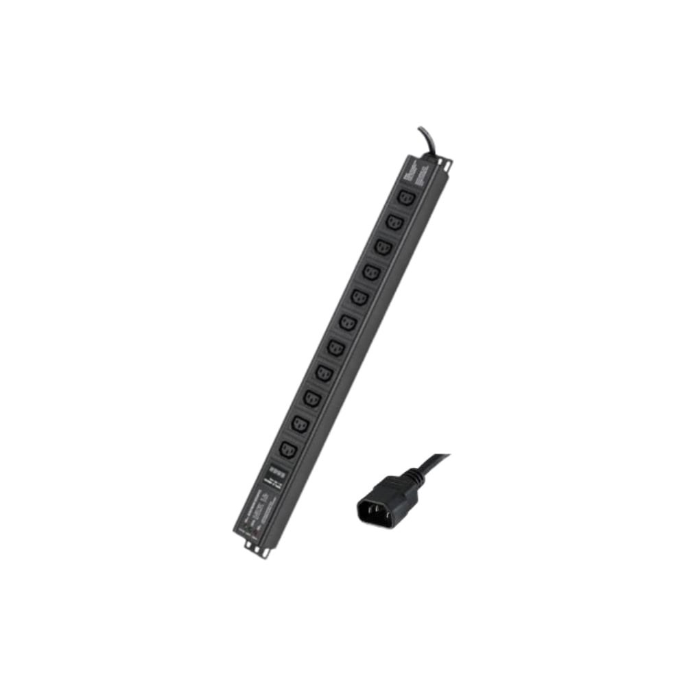 Блок распределения питания DKC (pdu) 0u 10a с индикацией и защитой, вых:11 с13, вх:с14 R5VIEC11CDOP предназначен для обеспечения электропитания активных потребителей, размещенных в IT-корпусах. Крепеж входит в комплект. Предназначен для вертикального монтажа. Имеет 11 разъемов IEC C13 и двухметровый кабель с разъемом IEC C14. Имеет индикатор тока. Номинальное напряжение - 220-250 В, номинальная сила тока 10 А.