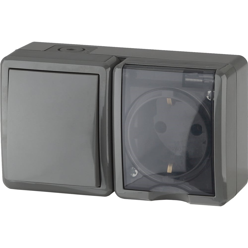 Блок розетка и выключатель ЭРА 11-7401-03 IP54, 16A 10AX -250В, ОУ, Эксперт, серый Б0020734 выполнен из качественного поликарбоната и оснащён уникальными винтовыми клеммами ЭКСПЕРТ для максимально качественного зажима кабеля в механизме.