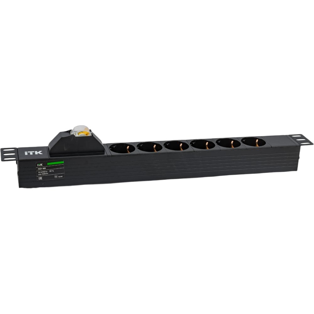 Блок розеток IEK ITK PDU 6 роз. нем. ст. с автом.10А 1U, вх.С14 без каб. чер. PH21-6D3