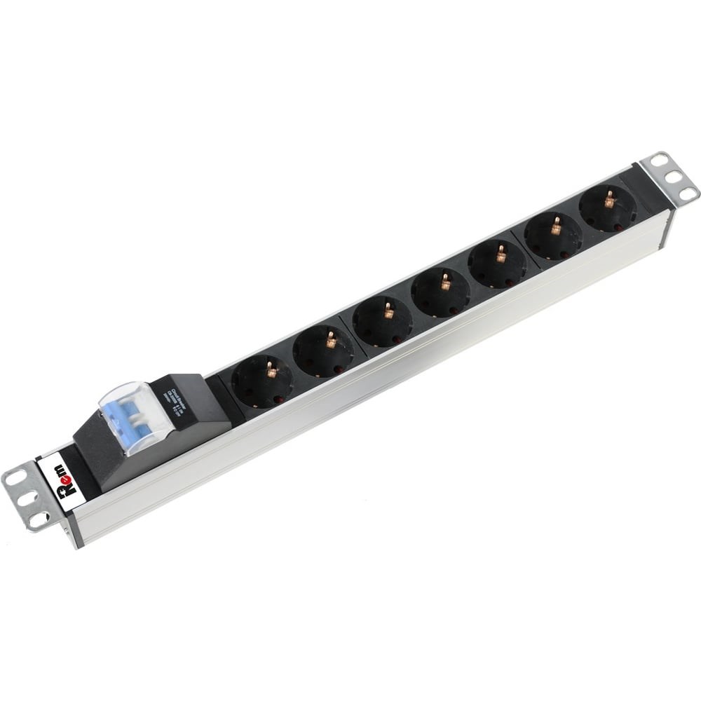 Блок розеток REM Rem-16, с автоматом, 16А, 7, Shuko, алюминий, 19, колодка R-16-7S-A-440-K