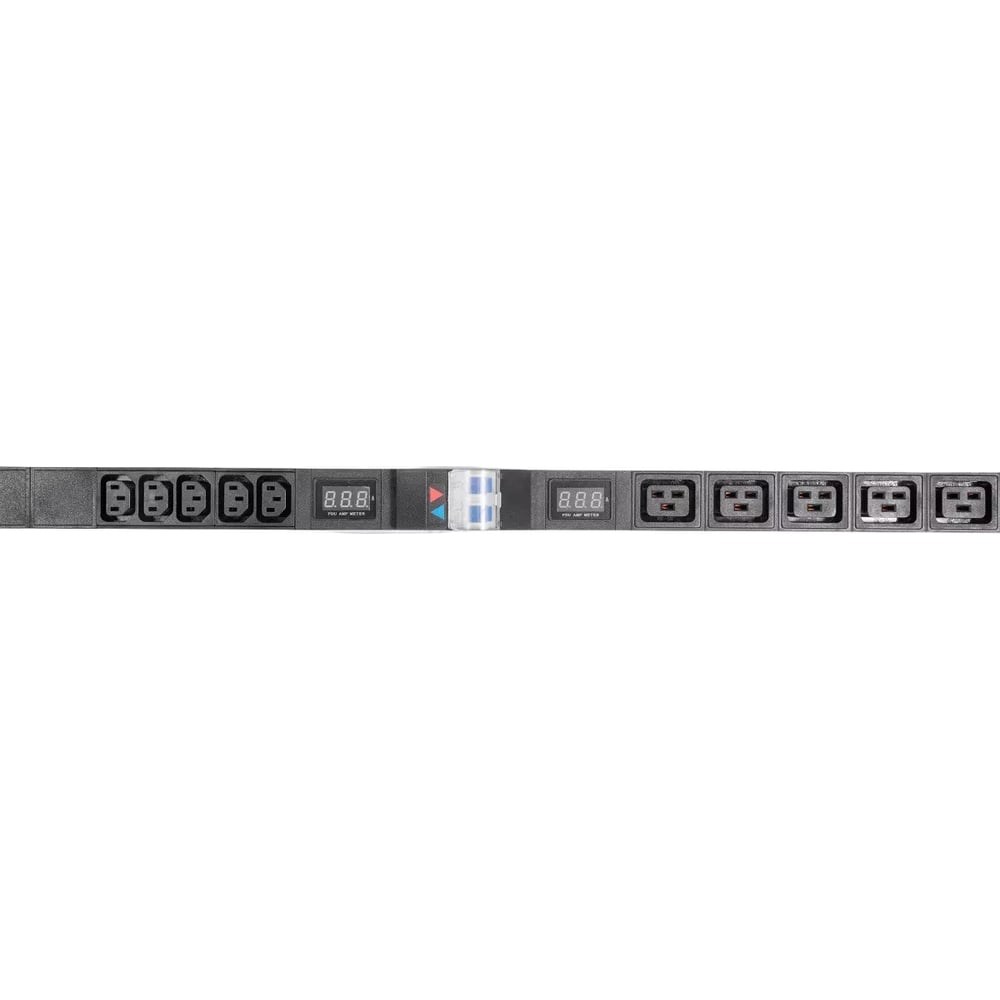Блок силовых розеток Rem -32, вертикальный, неуправляемый, IEC 60320 С13x10, IEC 60320 С19x5, вход колодка, 19", 1436мм 32А, автомат + амперметр, алюминий, 2 контура, IP20 R-32-2x(10C13-5C19-A-Am)-1420-K
