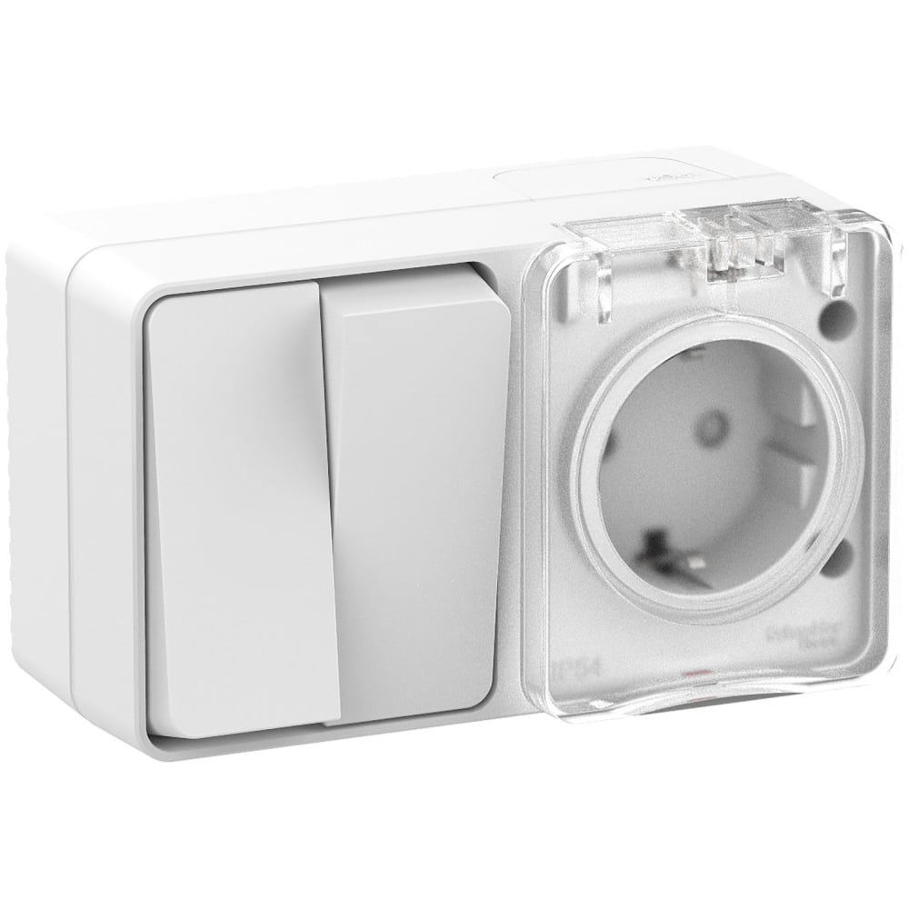 Блок для открытого монтажа из розетки с заземлением со шторками (16А, 250В) и 2-клавишного выключателя (10А).степень защиты IP:54, Степень защиты IK: IK08.продукция AtlasDesign Profi54 созданы специально для тех мест, где требуется повышенная защита от влаги и пылиуютная веранда в загородном доме, уличное кафе, любимый гараж или мастерская – выключатели и розетки будут обеспечивать надежную защиту и радовать глаз современным дизайномуниверсальный белый цвет гармонично впишется в любую обстановку