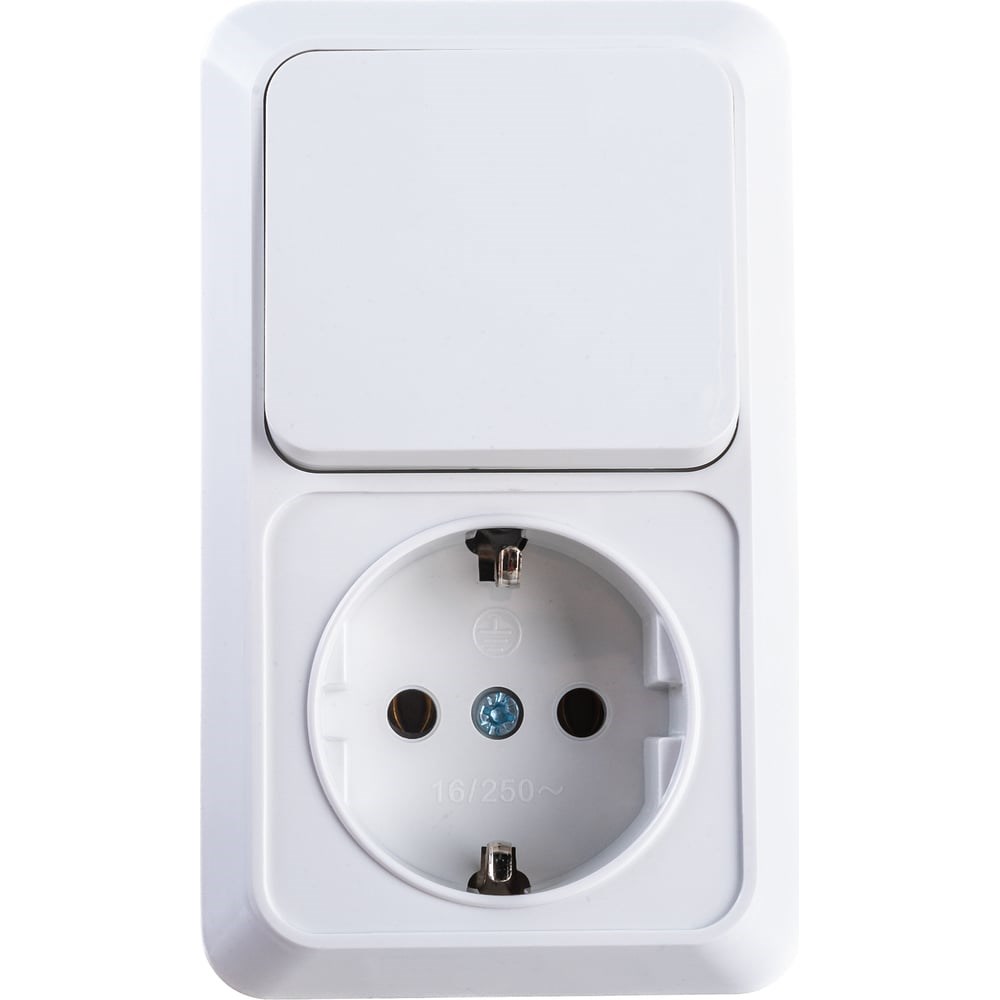 Вертикальный блок: одноклавишный выключатель + розетка с заземлением, белый UNIVersal Олимп О0038 очень удобен в эксплуатации, широко используется для монтажа в бытовых помещениях. Лицевая панель изделия выполнена из пластика белого цвета. Размер: 122х68х43 мм.