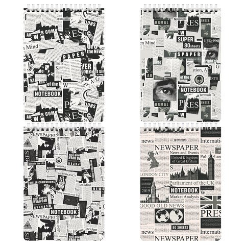 Блокнот А5 (146х206 мм), 80 л., гребень, картон, жесткая подложка, клетка, BRAUBERG, "Первые полосы", 114381