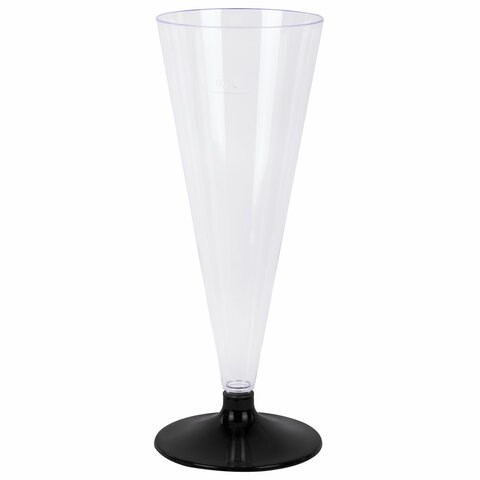 Бокал одноразовый 150 мл для шампанского "Конус" пластиковый, черная низкая ножка, ВЗЛП, 1010П/Ч
