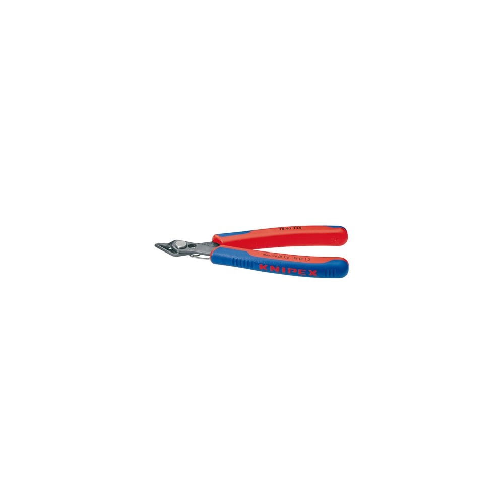 Бокорезы для электроники KNIPEX KN-7861125 с оптимальной геометрией лезвия выполняют чистый рез проводов, в том числе стекловолоконных кабелей. При производстве использовалась нержавеющая сталь (INOX) для долгого срока службы. На двухкомпонентных рукоятках имеются желобки, что способствует надежному удержанию инструмента. В конструкции предусмотрен ограничитель раскрытия для удобной ширины захвата.