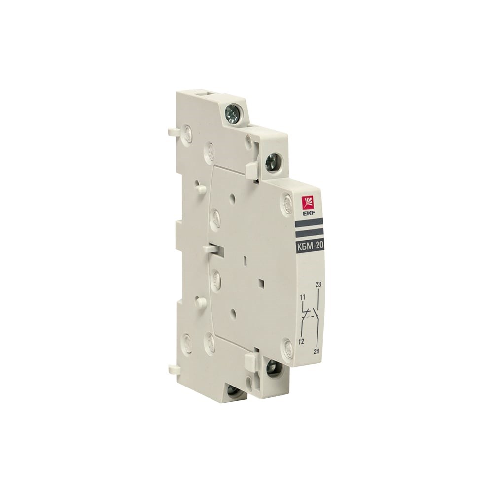 Боковой дополнительный контакт EKF КБМ-20 для КМ PROxima km-cs-20 имеет номинальный рабочий ток 6 А. Контактная группа - 2NO.