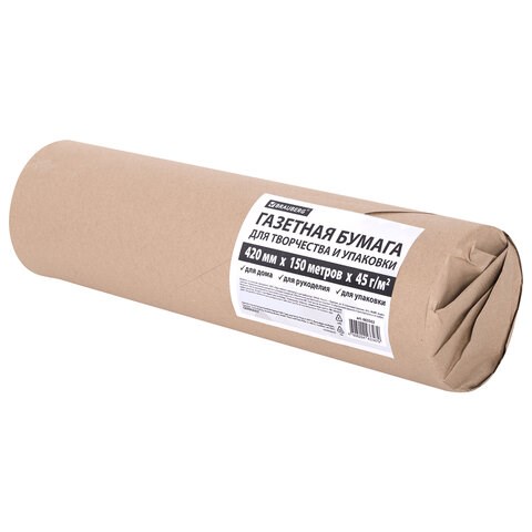 Бумага для творчества и упаковки, газетная, рулон 420 мм х 150 м, 45 г/м2, BRAUBERG, 665563