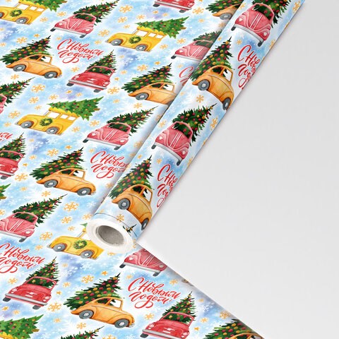 Бумага упаковочная мелованная BIG SIZE новогодняя "Машинки", 0,7х10 м, ЗОЛОТАЯ СКАЗКА, 592617