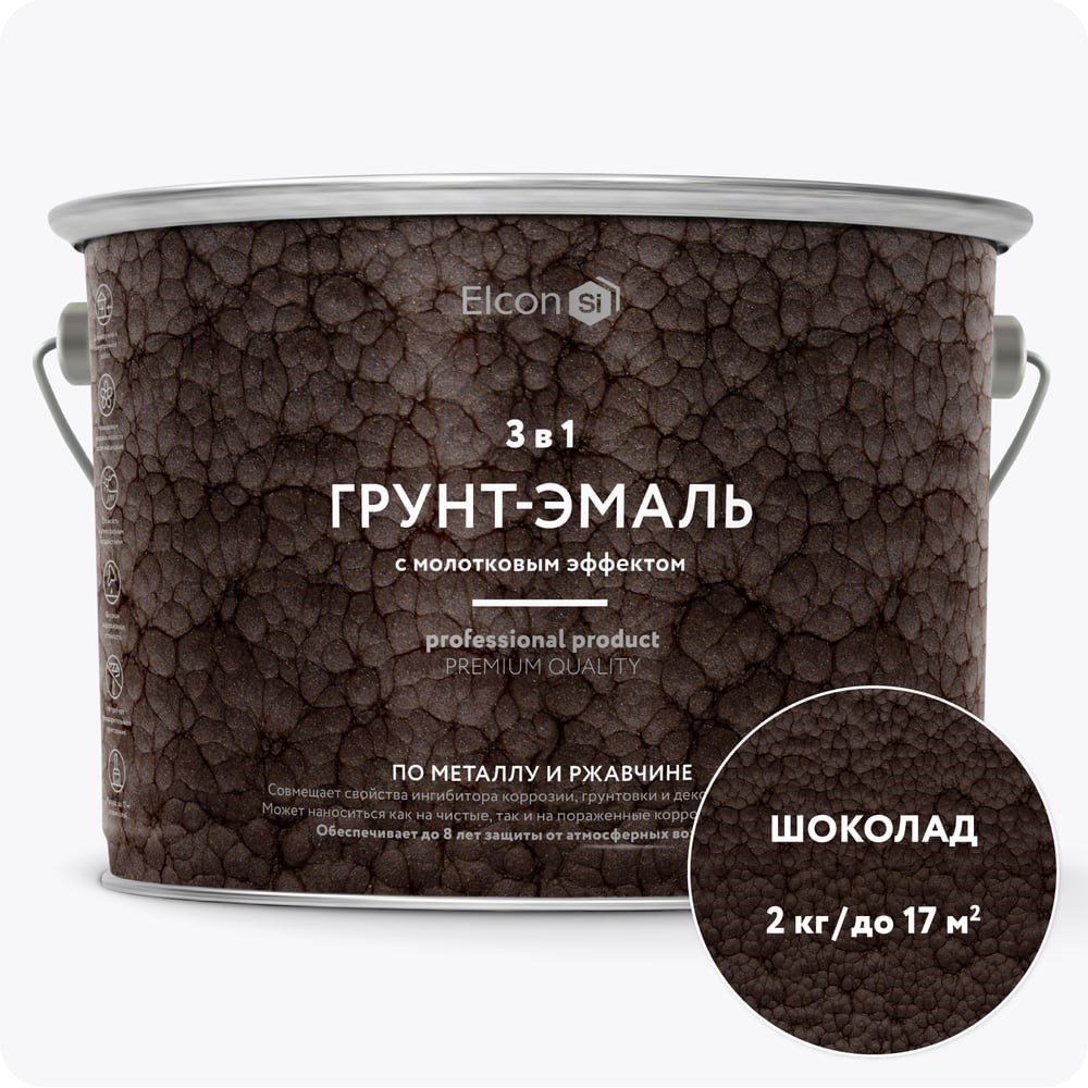 Краска по металлу (краска по ржавчине) с молотковым эффектом Elcon шоколад 2 кг 00-00461433 предназначена для защитно-декоративной окраски металлических конструкций, кованых художественных изделий, промышленного оборудования, приборов, дверей, ворот с целью создания характерного узорчатого рисунка на поверхности окрашиваемых объектов, эксплуатируемых в атмосферных условиях и при перепадах температур от -60 °С до + 100 °С.Указания к применению:• Очистить поверхность от загрязнений, обезжирить растворителем Elcon R или ксилолом (недопустимо использовать уайт-спирит, сольвент, бензин). • Перед применением тщательно перемешать, при необходимости разбавить растворителем Elcon R до 10% от общей массы. • Допускается нанесение без предварительного грунтования. • Эмаль наносится на сухую поверхность в 2–3 слоя с промежуточной сушкой 1-2 часа при температуре +20°C. • Время окончательной сушки при температуре (20±2) °С — 24 часа. • Срок окончательной полимеризации покрытия при температуре (20±2) °С — 72 часа. Для разбавления эмали и обезжиривания поверхности рекомендуем использовать растворитель Elcon R Области применения:Металлические изделияСадовая мебельВоротаЗаборыДвериСветильникиСкамьиОборудование