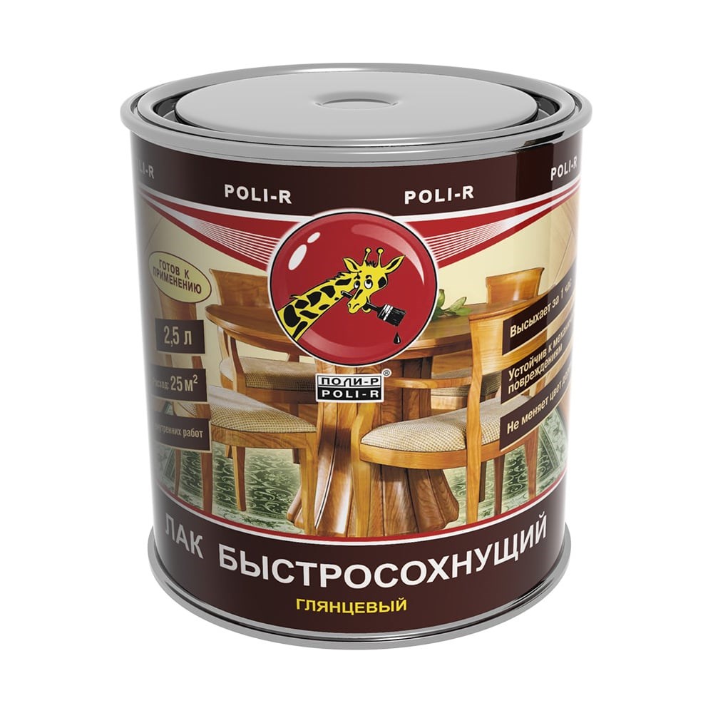 Быстросохнущий лак Poli-R (глянцевый; 2.5 л) 13510 предназначен для защитно-декоративной обработки мебели, дверей, рамок, перил и прочих деревянных элементов (полы рекомендуется покрывать паркетными лаками). Образует покрытие, стойкое к ударам и механическим повреждениям. Самовыравнивающийся, не оставляет следов от кисти, не меняет цвета древесины и качественно заполняет все неровности и поры. Может использоваться, как быстросохнущая грунтовка под алкидно-уретановые паркетные и яхтные лаки.