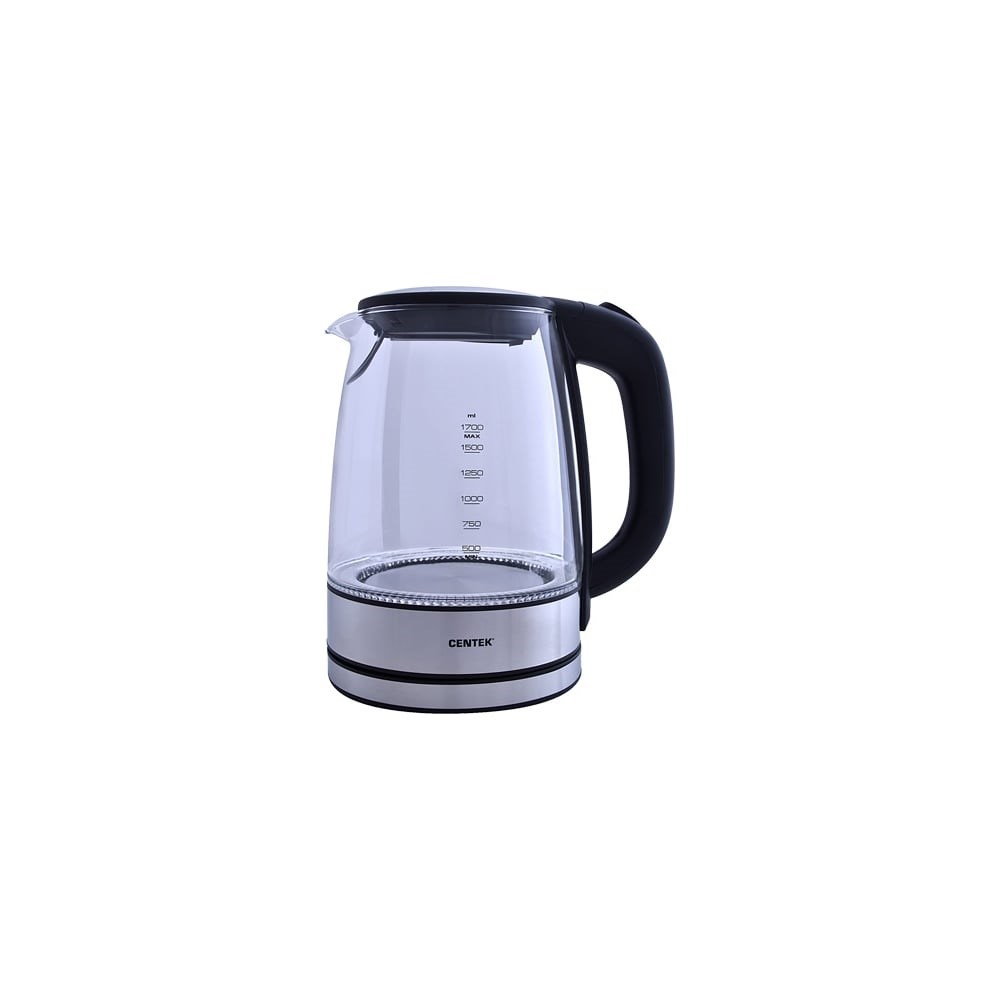 Чайник Centek CT-0030 стекло 1.7 л, 2200 Вт, внутренняя LED подсветка CT-0030 предназначен для использования в офисе или дома.Чайник имеет защиту от включения без воды, благодаря чему безопасен в эксплуатации.Корпус из прочного материала не деформируется под воздействием высоких температур.Обладает лаконичным дизайном и подходит под любой интерьер.Чайник Centek CT-0030 – качественное и надежное изделие объемом 1,7 л и мощностью 2200 Вт, которое кипятит воду за несколько минут. Скрытый нагревательный элемент дает ряд весомых преимуществ перед моделями с открытой спиралью. К ним относятся: увеличенная теплоотдача, более быстрый нагрев воды и меньшая склонность к образованию накипи. Корпус выполнен из экологически чистого стекла, крышка и база – из пластика с отделкой из нержавеющей стали. Пластиковая ручка чайника не перегревается и не скользит в ладони во время использования.Сливной носик с фильтром обеспечивает удобное переливание воды и защищает от попадания накипи. Плотно прилегающая к корпусу крышка обеспечивает герметичность при закипании и открывается нажатием кнопки. Благодаря автоматическому отключению чайника вам не нужно находиться рядом с прибором во время его работы. Защита включения без воды предупреждает поломку. Стильный дизайн. Внутренняя LED-подсветка. Вращение базы на 360°. Отсек для шнура, расположенный на дне базы, экономит место при хранении.