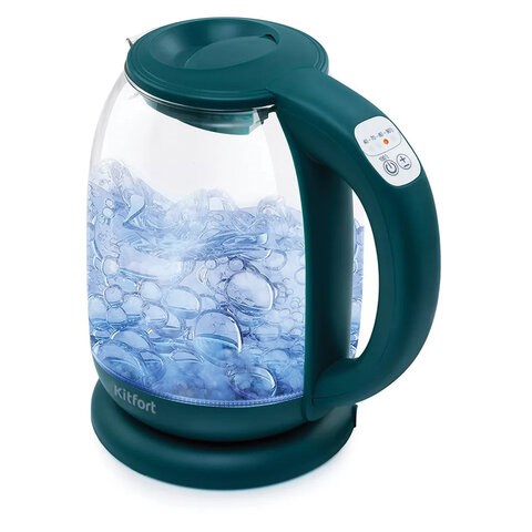 Чайник KITFORT КТ-640-4, 1,7 л, 2200 Вт, закрытый нагревательный элемент, ТЕРМОРЕГУЛЯТОР, стекло, изумрудный