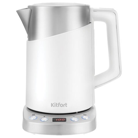 Чайник KITFORT КТ-660-1, 1,7 л, 2200 Вт, закрытый нагревательный элемент, ТЕРМОРЕГУЛЯТОР, двойные стенки, белый
