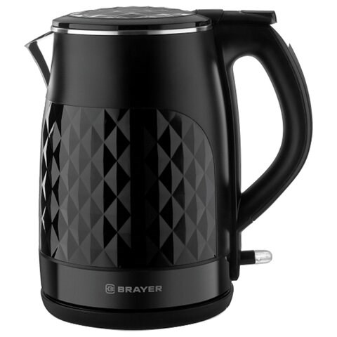 Чайник с двойными стенками BRAYER BR1043BK, 1,5 л, 2200 Вт, закрытый нагревательный элемент, черный