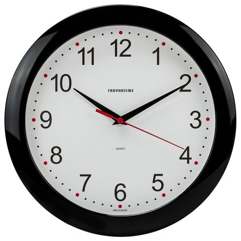Часы настенные TROYKATIME (TROYKA) 11100112, круг, белые, черная рамка, 29х29х3,5 см