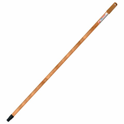 Черенок выполнен из древесины эвкалипта и покрыт лаком. Сверху черенок имеет колпачок с отверстием для подвешивания, для комфортного хранения в любом помещении. Снизу черенок имеет пластиковую накладку со стандартной еврорезьбой, которая подойдет для большинства видов уборочного инвентаря.
