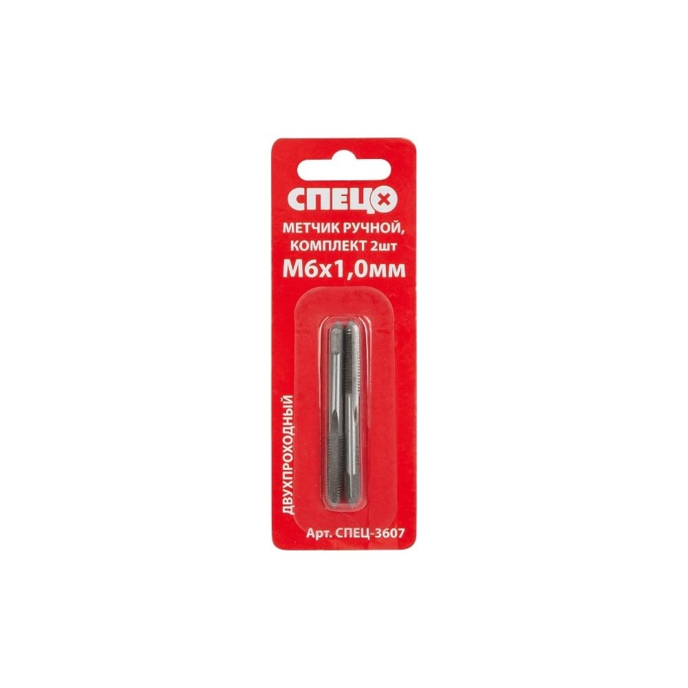 Ручной метчик Спец М6x1,0 мм, черновой, чистовой, комплект 2шт., блистер СПЕЦ-3607 используется для нарезания внутренней резьбы в глухих и сквозных отверстиях. В комплект входит две модели: для черновой и чистовой обработки. Использование комплекта метчиков позволяет получить высокое качество резьбы. Инструмент изготовлен из прочной и качественной стали, что обеспечивает стойкость к износу и долгий срок службы.