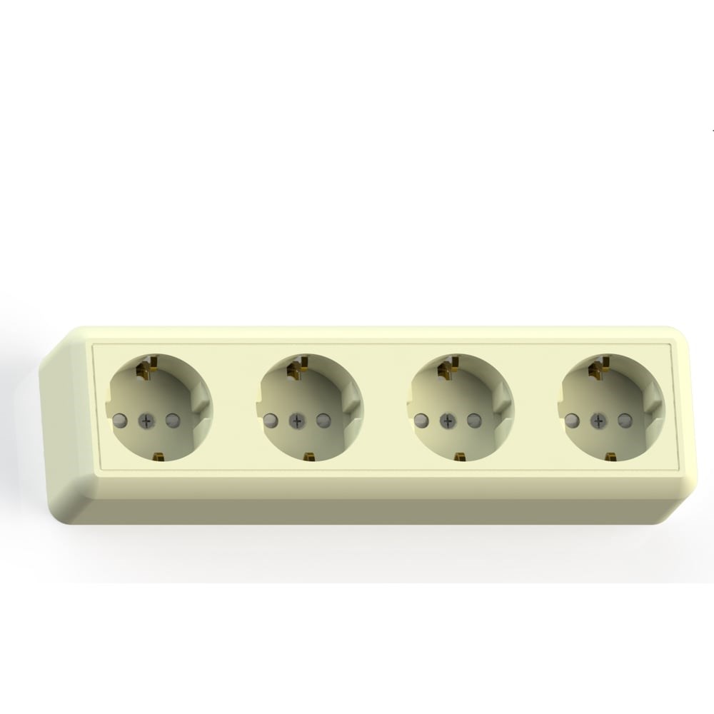Розетка Кунцево-Электро ОПТИМА открытой установки четырехместная с з/к и з/ш, 16А РА16-403 с/к 8051