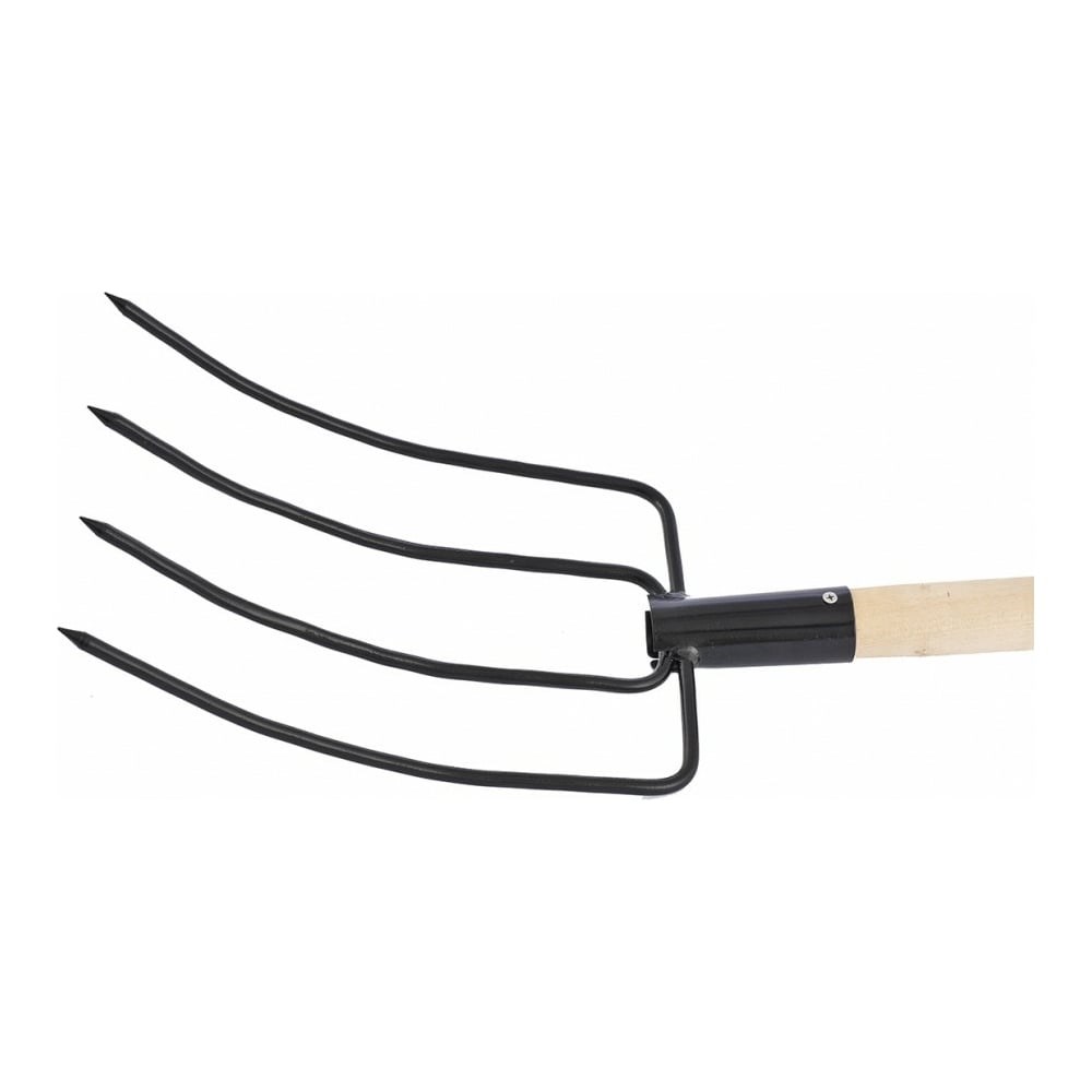 Сенные 4-рогие вилы Сибртех 63807 размером 210 х 310 х 1400 мм, с деревянным черенком, предназначены для работ с сеном, навозом и компостом. Зубья с круглым сечением обеспечивают прочность вил. Инструмент комфортен в эксплуатации и эффективен в решении поставленных задач.