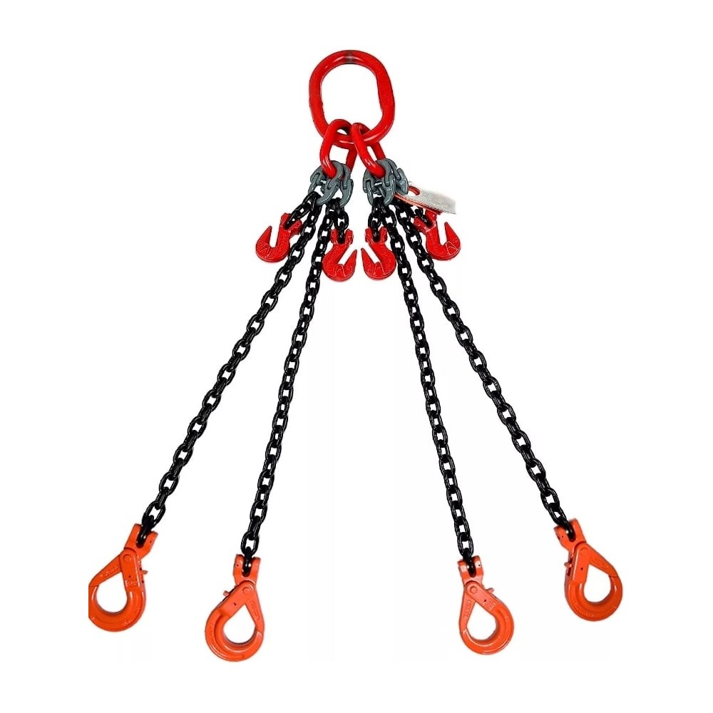 Цепной четырехветвевой строп представляет собой универсальное грузозахватное приспособление для подъема и перемещения грузов, состоящее из четырех цепей высокого класса прочности. Строп оснащен крюками с защелками для безопасной эксплуатации. Иногда цепной четырехветвевой строп обозначают как «паук цепной», также он соответствует марке «строп 4сц».Характеризуется мобильностью, компактностью, длительным сроком службы, гибкостью, долговечностью, может работать в агрессивных средах, при низких и высоких температурах, ремонтопригоден, а так же возможностью использования при различных способах строповки.Изготовлен в строгом соответствии с РД 10–33–93 с изм. РД 10–231–98 «Стропы грузовые общего назначения, требования к устройству и безопасной эксплуатации», а также европейскими стандартами EN 13414-1, EN 13414-2 и EN-13414-3.