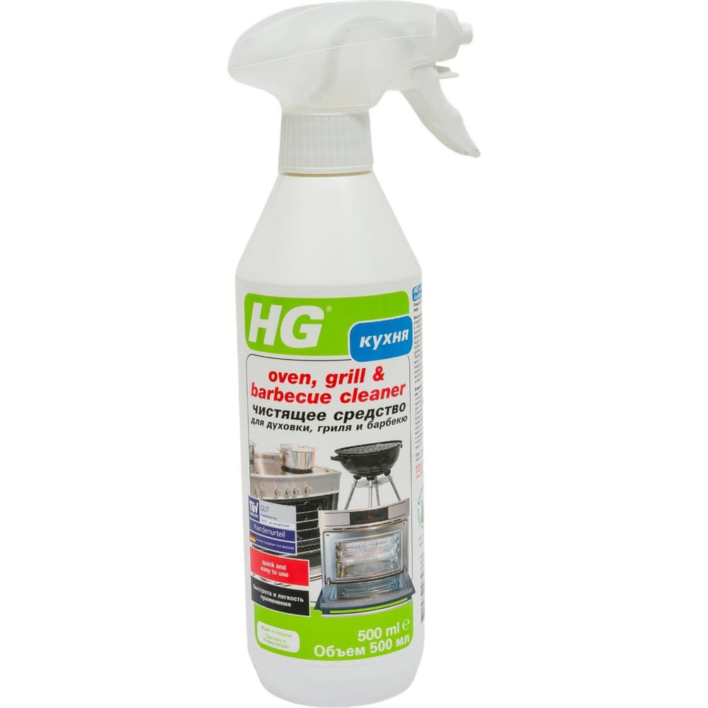 Чистящее средство для духовки и гриля HG 0.5 л 138050161 предназначено для удаления засохшего и пригорелого жира, масляных пятен, застарелых загрязнений с внутренних поверхностей духовки, гриля, барбекю. В составе отсутствуют вредные вещества, благодаря чему средство безопасно для покрытий и здоровья человека. При использовании образует активную пену, поэтому имеет экономичный расход. Емкость оснащена дозатором, что позволяет равномерно распределить средство на поверхности. Способ применения: Повернуть насадку спрея в положение ON. Для лучшего результата немного прогреть духовку или гриль, но температура не должна превышать 30° С. Распылить средство на поверхность и оставить действовать на 3-5 минут. Затем протереть влажной губкой. После того как будет удален весь жир, нужно несколько раз промыть поверхность горячей водой. В случае сильного загрязнения повторить обработку еще раз. Повернуть насадку спрея в положение OFF.