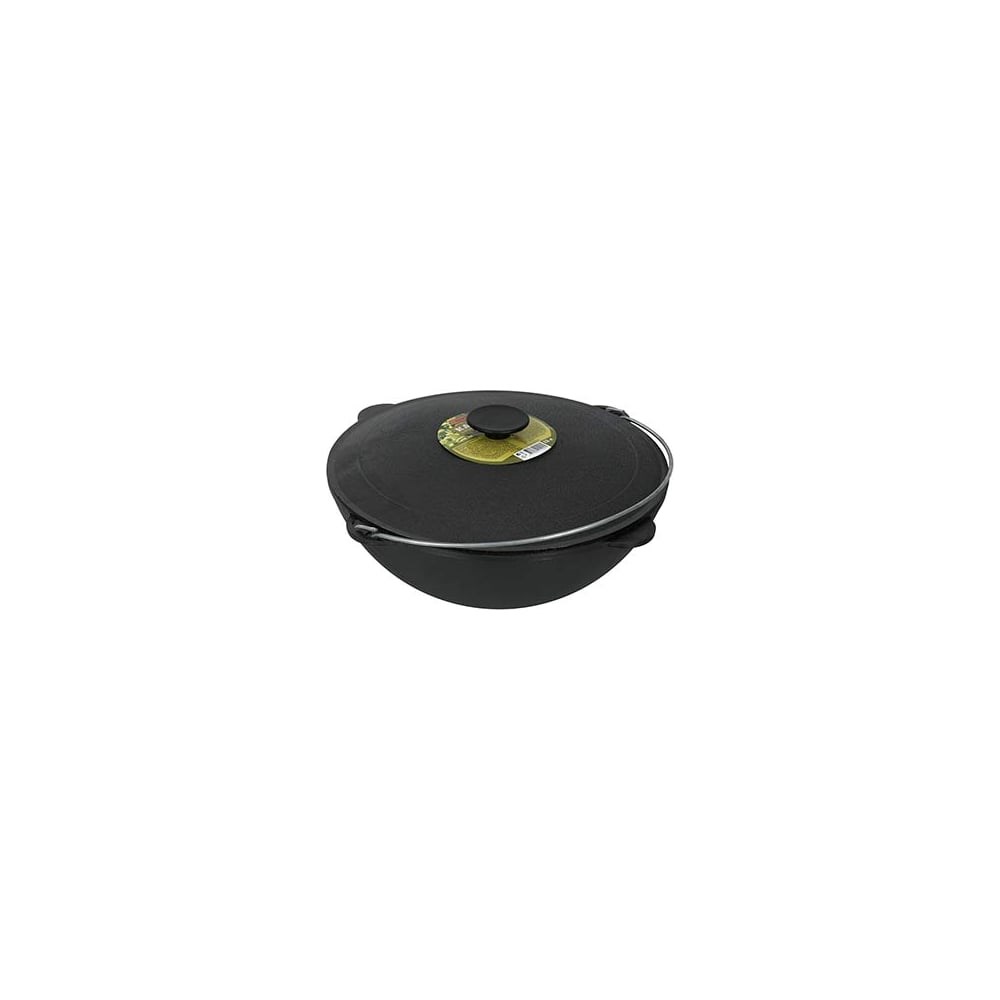 Казан чугунный с крышкой с круглым дном подходит для использования, как на открытом огне (мангал, учаг, тренога), так и в печи и на газовых плитках. Казан выполнен из высококачественного чугуна без примесей. Казан для плова прослужит не одно десятилетие при правильном использовании и уходе. Казан для плова равномерно прогревается и долго сохраняет тепло внутри. Чугунная крышка для открытого огня также служит для удерживания жара внутри и приданию блюду дополнительных вкусовых качеств